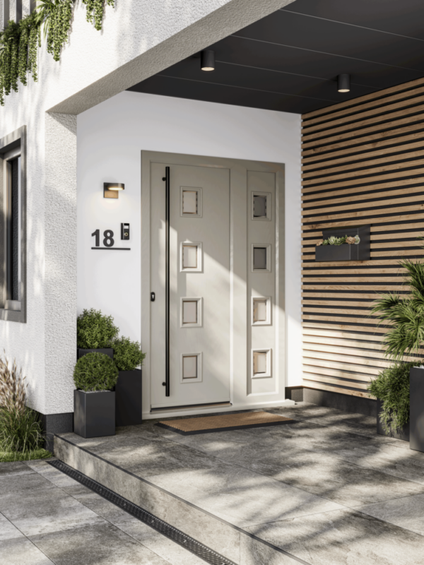 Door styles that rely on form, surface detail and proportion tend to work best. Composite doors are particularly well suited to modern homes because they allow flexibility in design, colour, glazing and hardware, while maintaining a consistent and refined appearance.